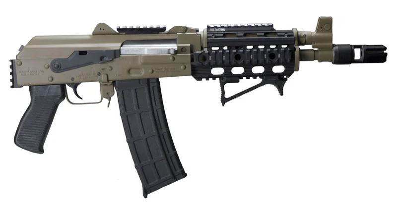 Built in Romania, the MINI DRACO Pistol is chambered in 7.62x39mm, features a 7.75″ barrel. This compact package comes with an Enhanced Trigger Group, threaded Barrel to attach your desired muzzle device, standard style AK Sights for full-size models and wood handguard. Includes one 30rd magazine.